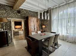 This traditional Landaise farmhouse dating to 1771 has been professionally renovated in recent years and offers everything you would need for an ideal family home, or second residence. The ground floor entrance hall leads through to a sumptuous 56m2 central reception room with heigh ceilings, exposed stone walls and a magnificent stone fireplace. Beyond here can be found a large, modern fitted kitchen, with seating around a second cosy fireplace fitted with a wood-buring stove - the perfect family room. Behind the kitchen is a second preparation kitchen and pantry, which leads to the veranda / summer room overlooking the lush landscaped gardens. A further summer kitchen / utilty room, two WC's, a downstairs bedroom, dressing room and spacious bathroom complete the ground floor. The upper floor level provides 4 further bedrooms, two bathrooms and spacious study and TV room. The interior decoration harmoniously blends period authentic charm with modern facilities and comforts.