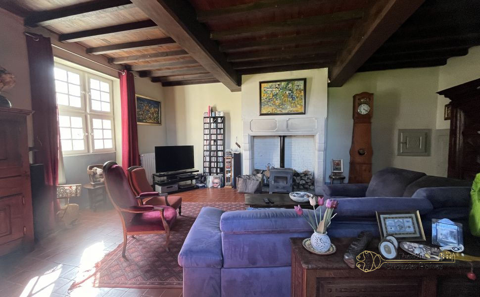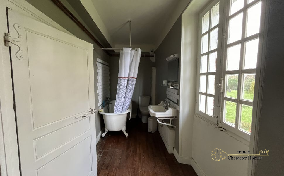Main House (Former Hunting Lodge): This character-filled former hunting lodge offers four spacious bedrooms and is rich in period details. Original features include beautiful terra-cotta floors, traditional fireplaces, and original doors and windows that reflect its historic charm. Ideal for those looking for an elegant primary residence with authentic French architectural touches.